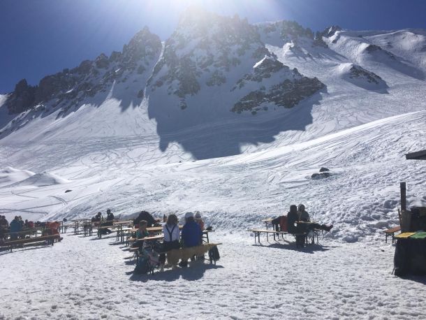Der Sonntag meinte es weiterhin gut mit uns: wieder Sonne satt und beste Bedingungen. Noch einmal wurde fleißig gefahren – wobei man sich manchmal kaum entscheiden konnte, ob man lieber noch eine Abfahrt macht oder doch einfach die Sonne auf einer der Hütten genießt.