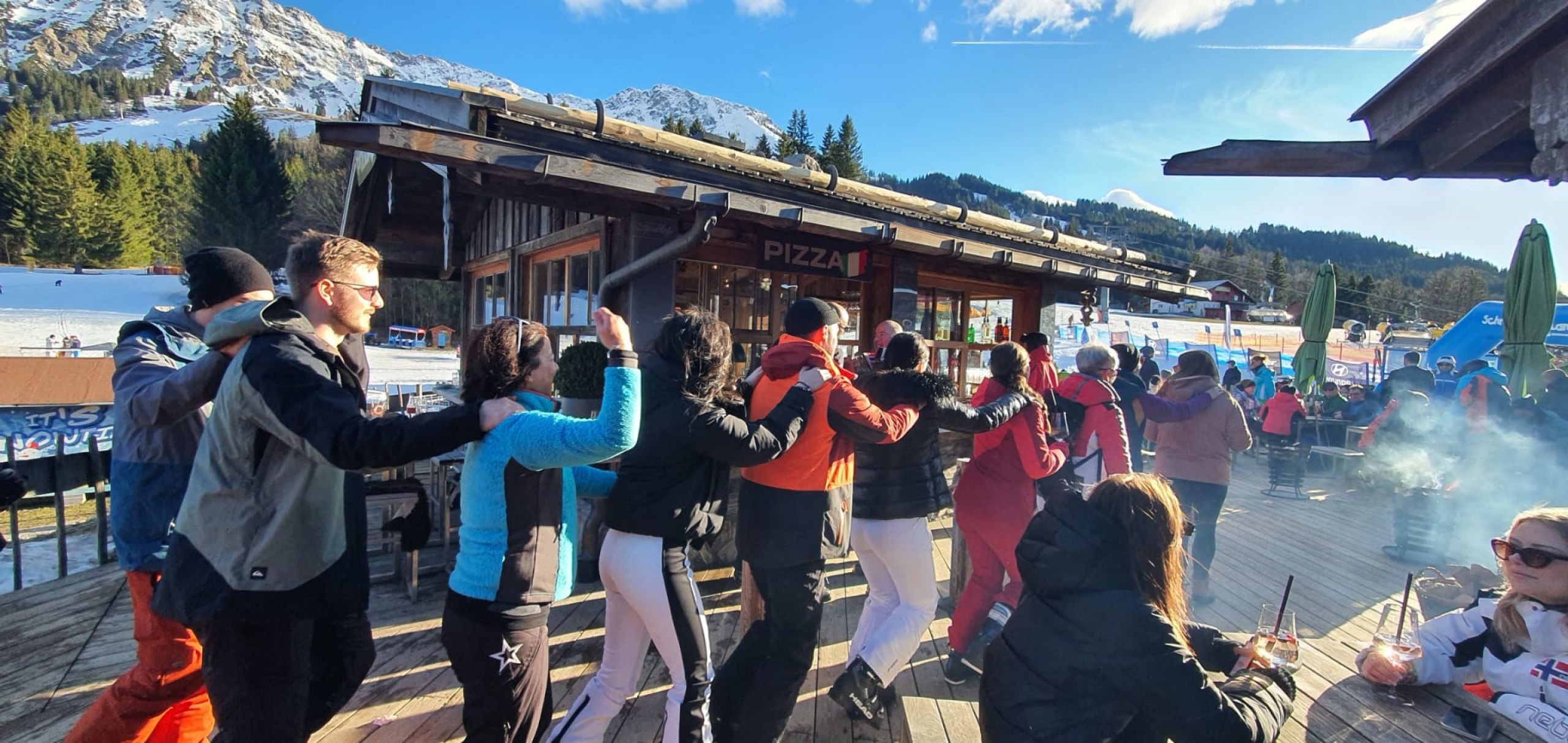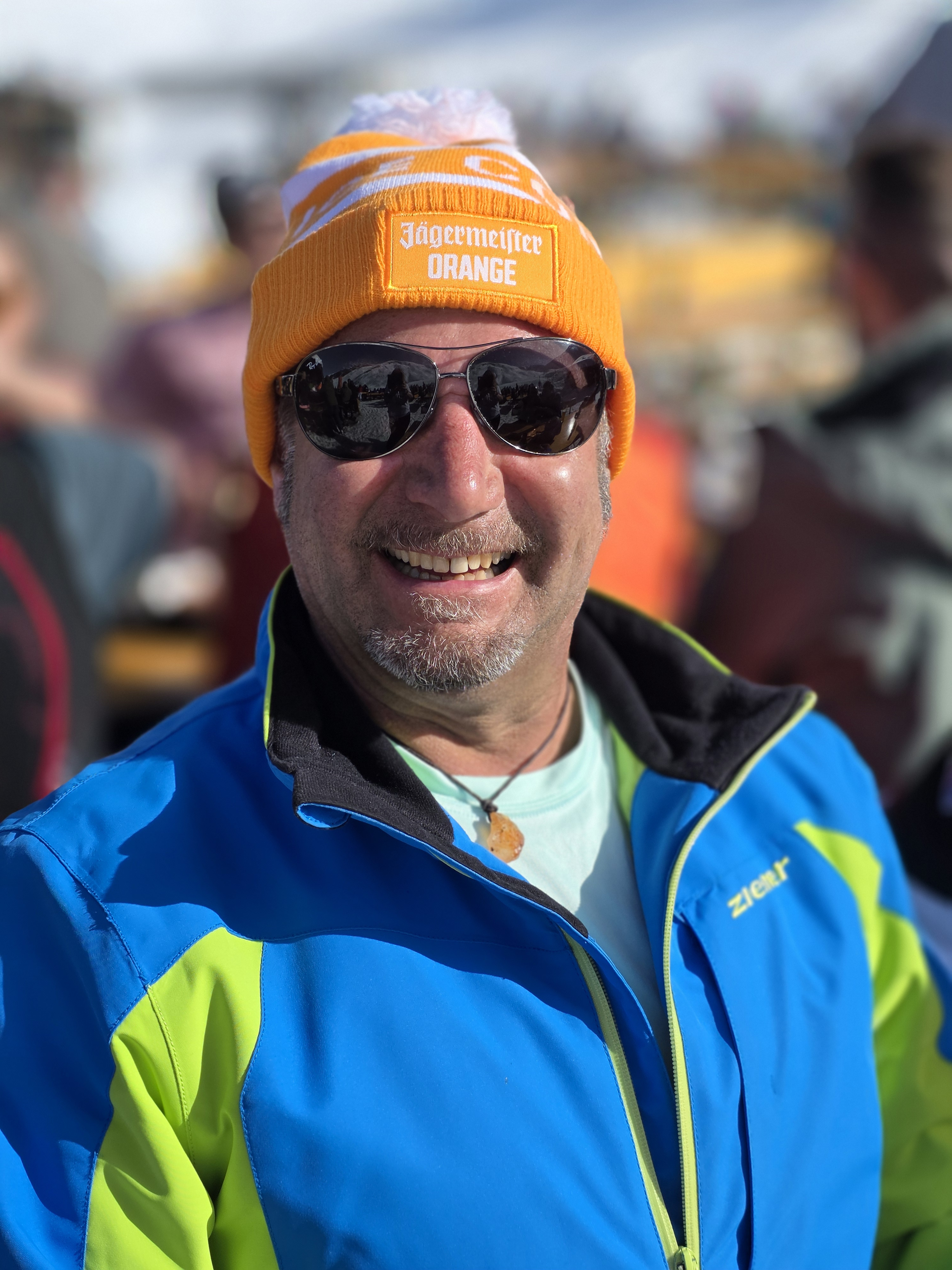 Zur Stärkung trafen wir uns zwischendurch auf der Hütte „Dohlennest“, wo gerade eine Marketingaktion von Jägermeister stattfand. Das sorgte für zusätzliche Unterhaltung – einige von uns kamen schließlich mit den auffälligen orangenen Jägermeister-Mützen zurück, und sogar eine Fahne hat den Weg als kleine Trophäe nach Hause gefunden.